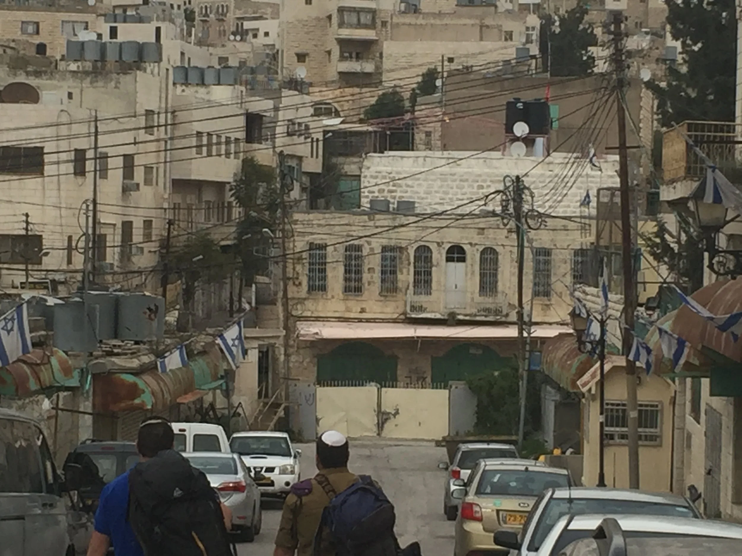 © Matthew Williams/The Conflict Archives: An Israeli soldier and his friend walking near Avraham Avinu in Hebron.